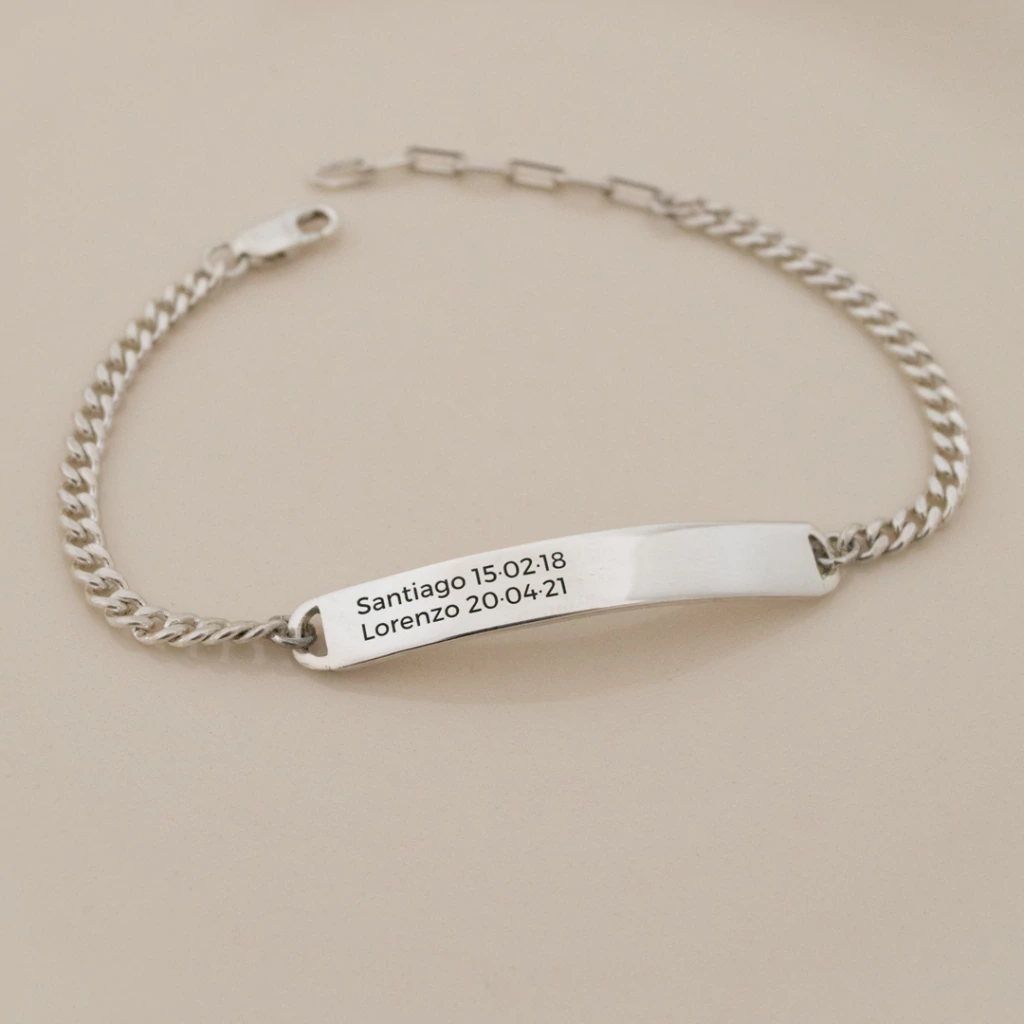• Medidas del dije grabado: 5cm de largo / 7mm de ancho / 1,2mm de espesor.
